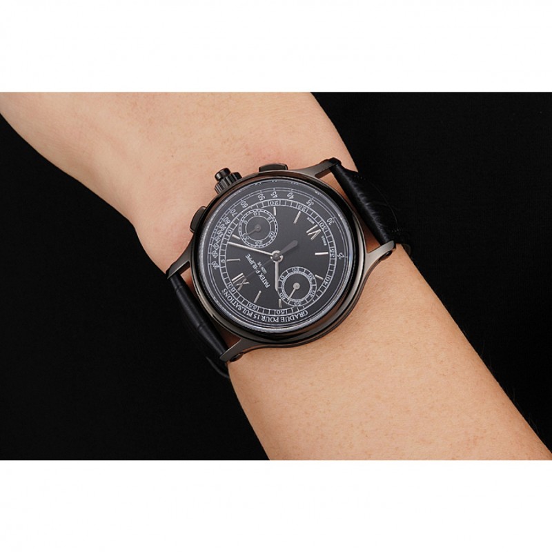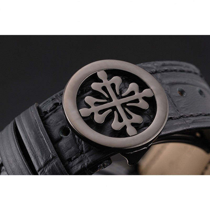 Swiss Patek Philippe 5170J Chronograph Black Dial Black Case Black Leather Strap Replica Watches